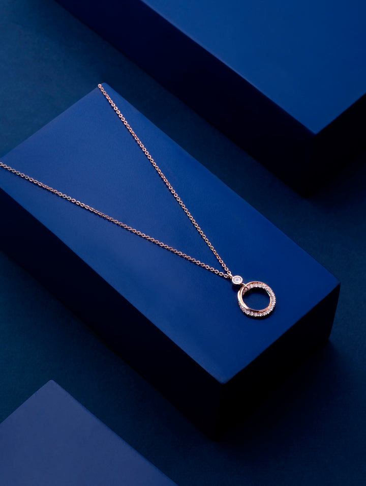 Keira Cubic Zirconia Intertwined Circle Necklace in a Rose Gold Tone Finish