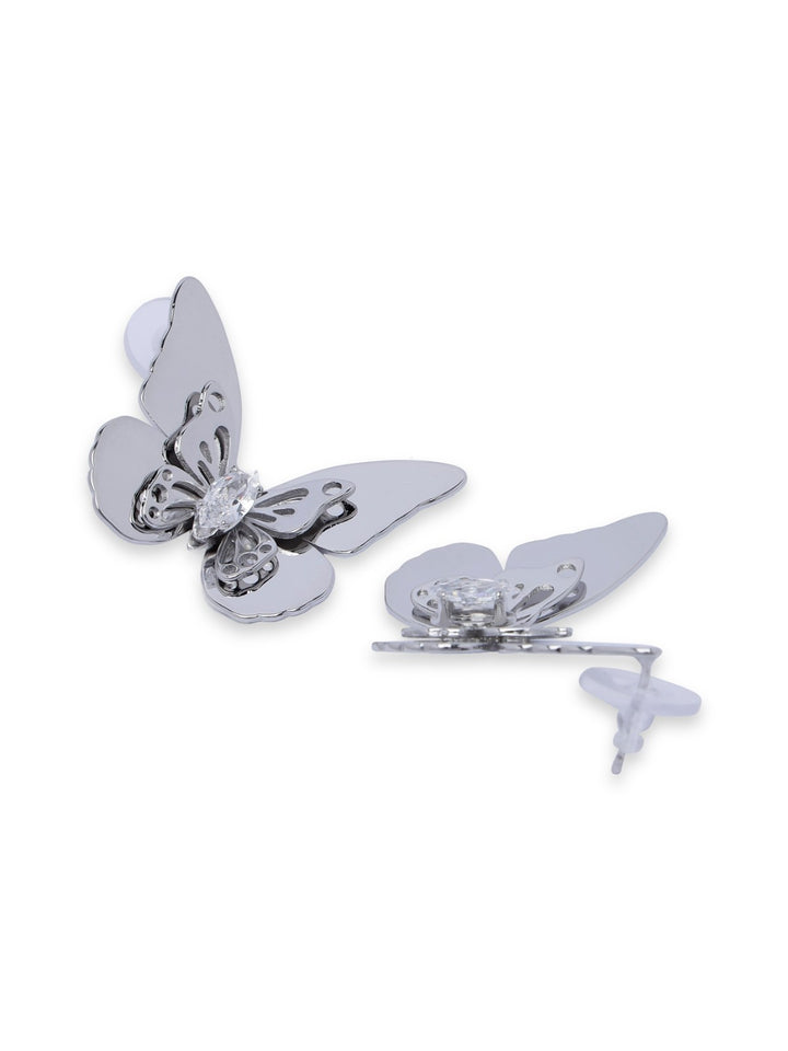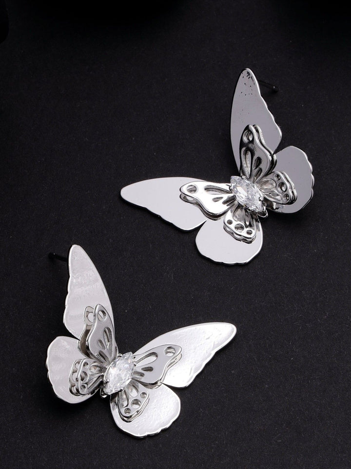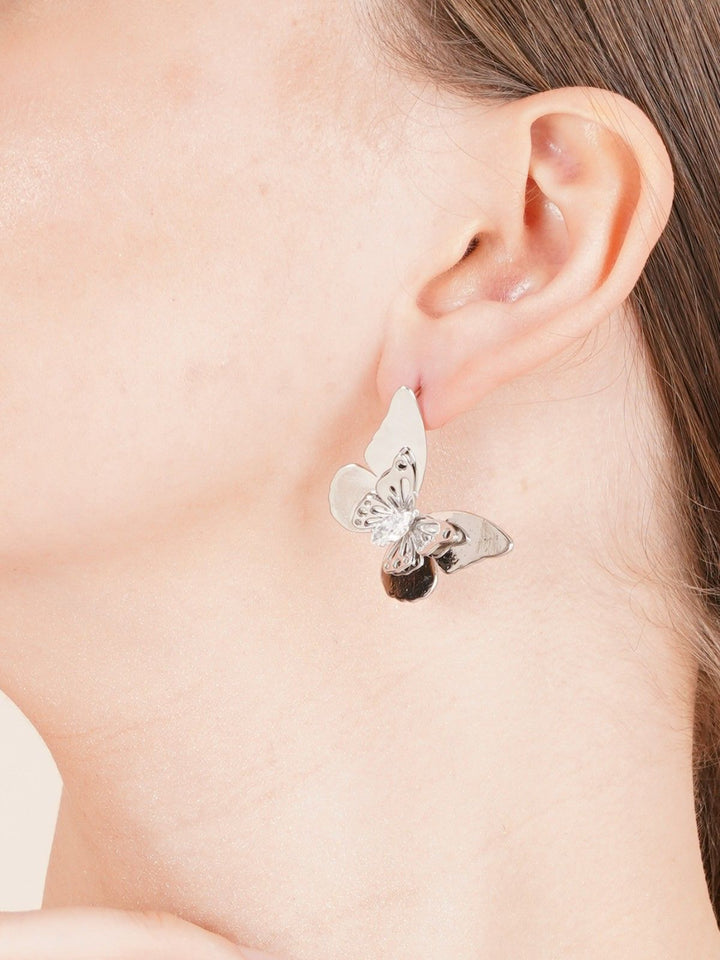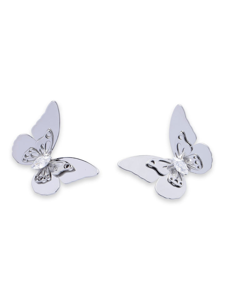 ER-102 Stainless Steel Silver Zircon Butter Fly Shape Earring Set