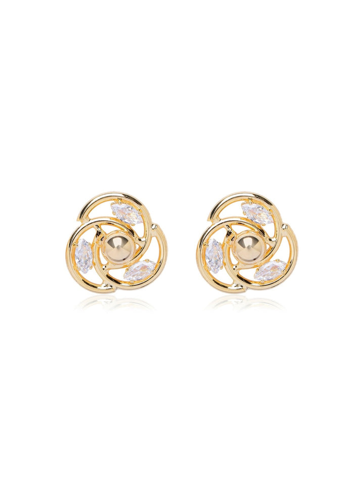 ER-104 Stainless Steel Golden Zircon Flower Shape Earring Set