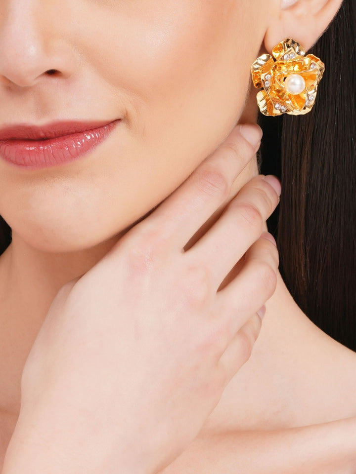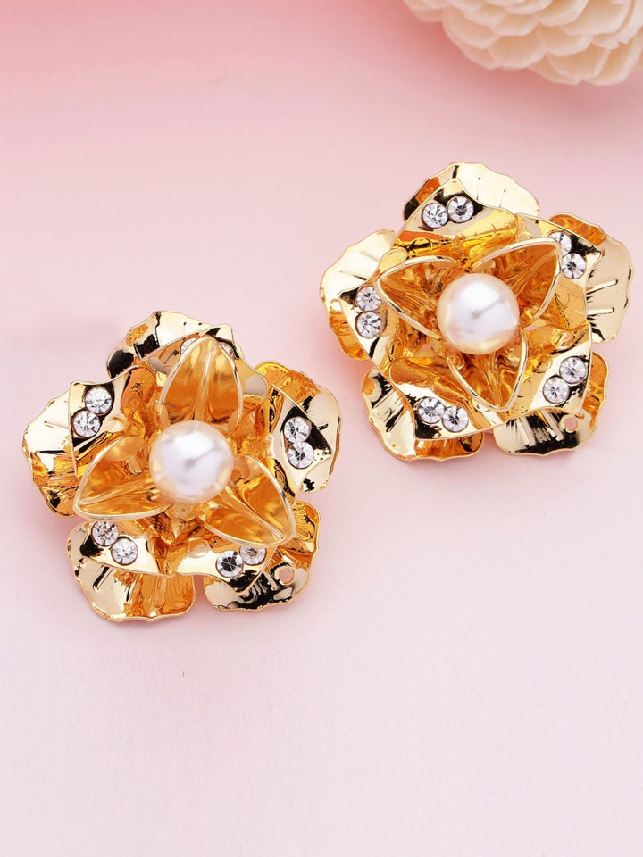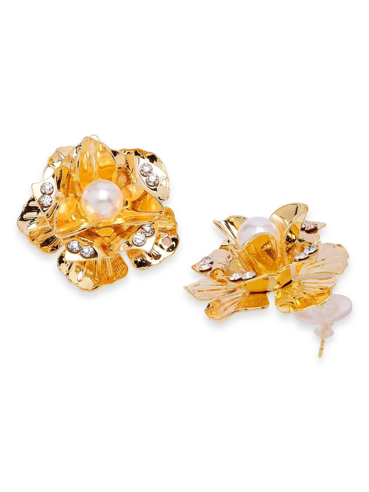 Ashnera Collection offers luxurious, elegant designs that enhance a woman's inherent beauty!! These pieces of jewelry have been made with the finest craftsmanship and are suitable for multiple occasions, including parties, weddings, engagements, office wear, and festive wear. Base Material - Stainless Steel, Plating - Gold Plating, Gemstone - Pearl, Shape - Flower.