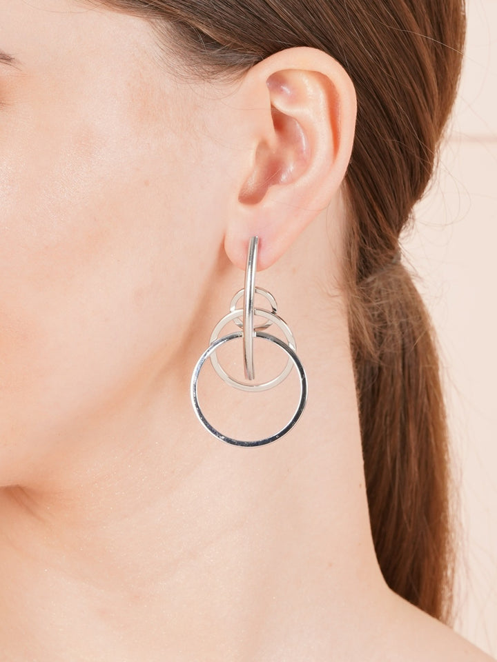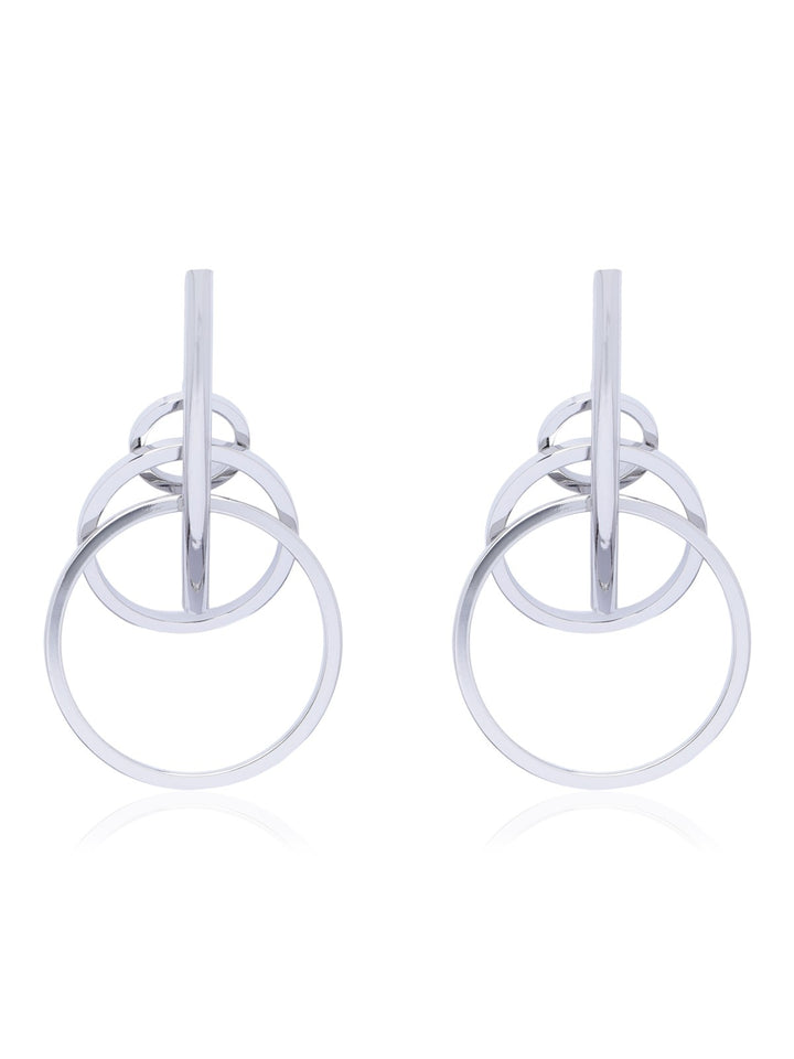 ER-108 Stainless Steel Silver Zircon Circle Shape Earring Set