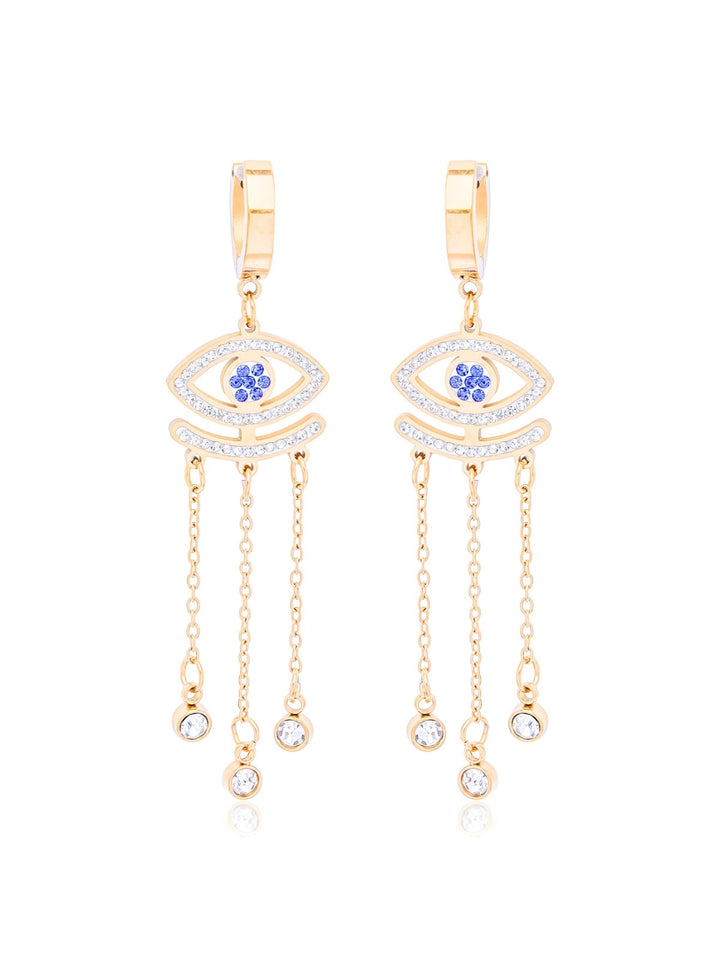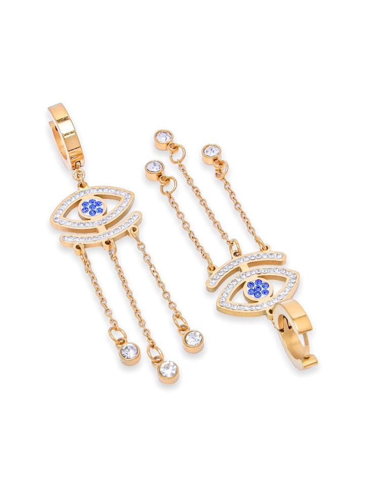 ER-111 Stainless Steel Golden Zircon Eye Shape Earring Set