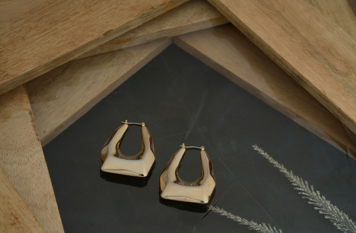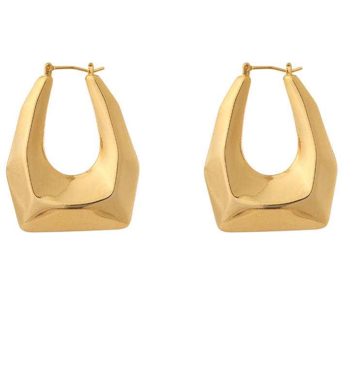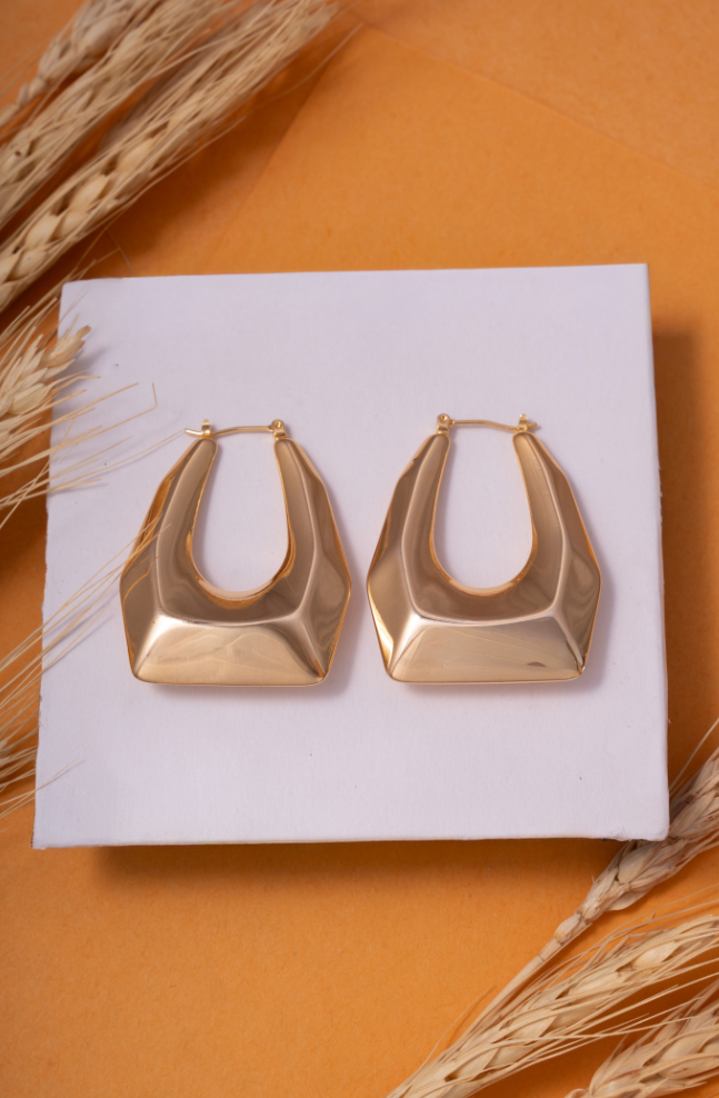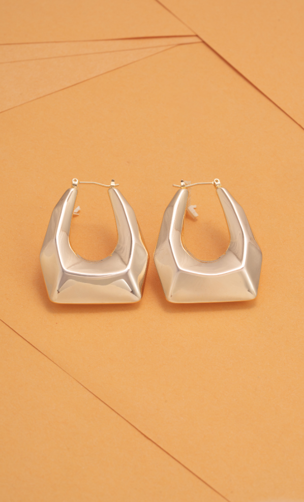 | Bold Geometric Hoop Earrings with a modern sculptural design, Crafted in a chunky, angular silhouette |